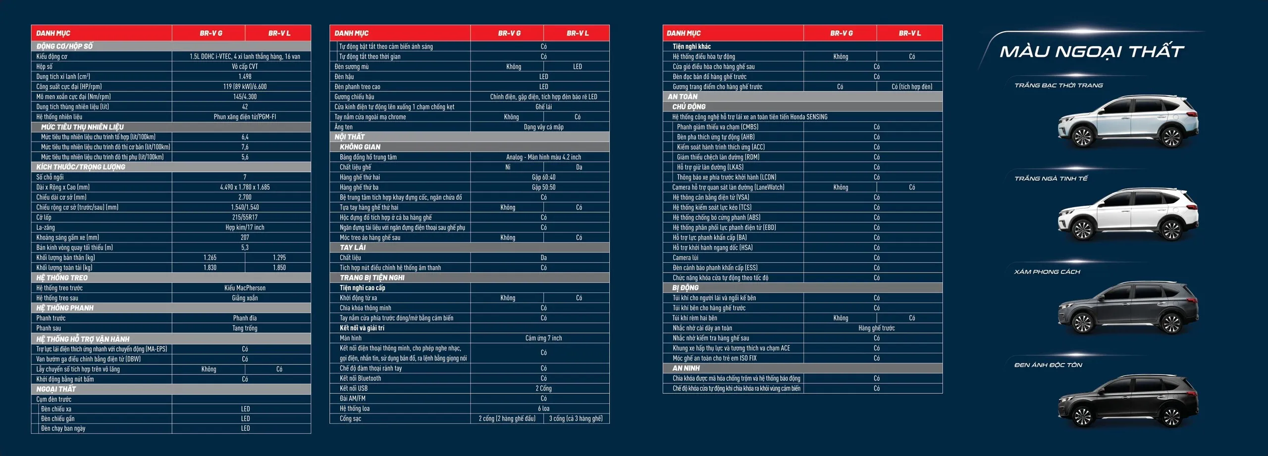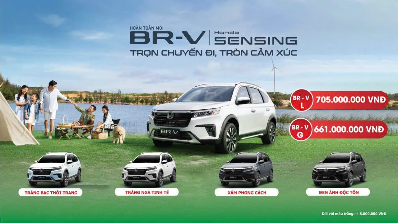Honda BR-V hoàn toàn mới được nhập khẩu nguyên chiếc từ Indonesia với 2 phiên bản: L, G cùng 4 lựa chọn màu sắc bao gồm: Trắng bạc thời trang, Trắng ngà tinh tế, Xám phong cách, Đen ánh độc tôn, chính thức bán tại thị trường Việt Nam từ ngày 12 tháng 07 năm 2023 qua hệ thống các Nhà Phân phối Ôtô Honda trên toàn quốc