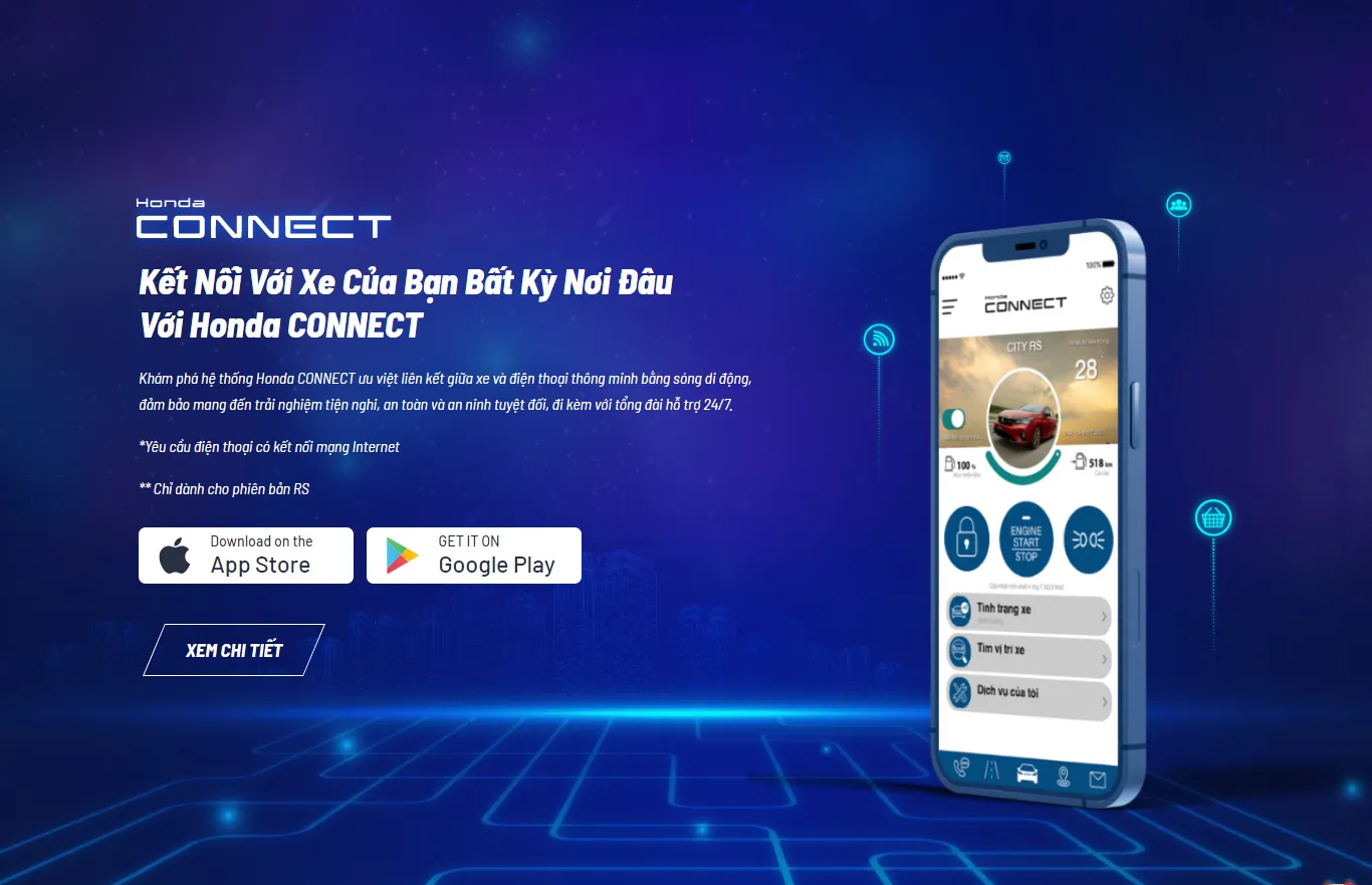 Chỉ cần cài đặt ứng dụng Honda CONNECT trên điện thoại thông minh, chủ sở hữu có thể kết nối và quản lý xe trong tầm tay, ở bất kỳ đâu và bất kỳ thời điểm nào. HVN sẽ ưu đãi miễn phí sử dụng dịch vụ ứng dụng Honda CONNECT cho khách hàng trong năm đầu tiên. Từ năm thứ 2, khách hàng chỉ phải trả mức giá từ 1.200.000 đồng cho 1 năm để sử dụng dịch vụ.