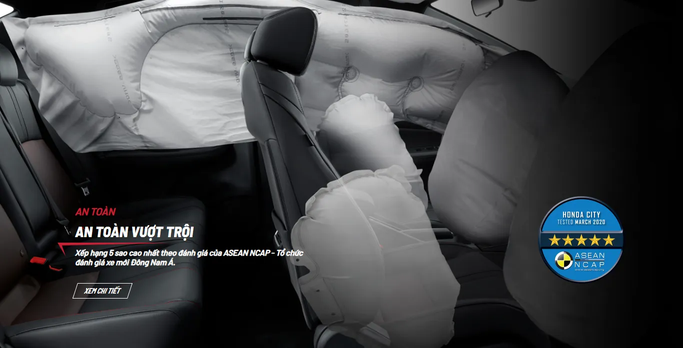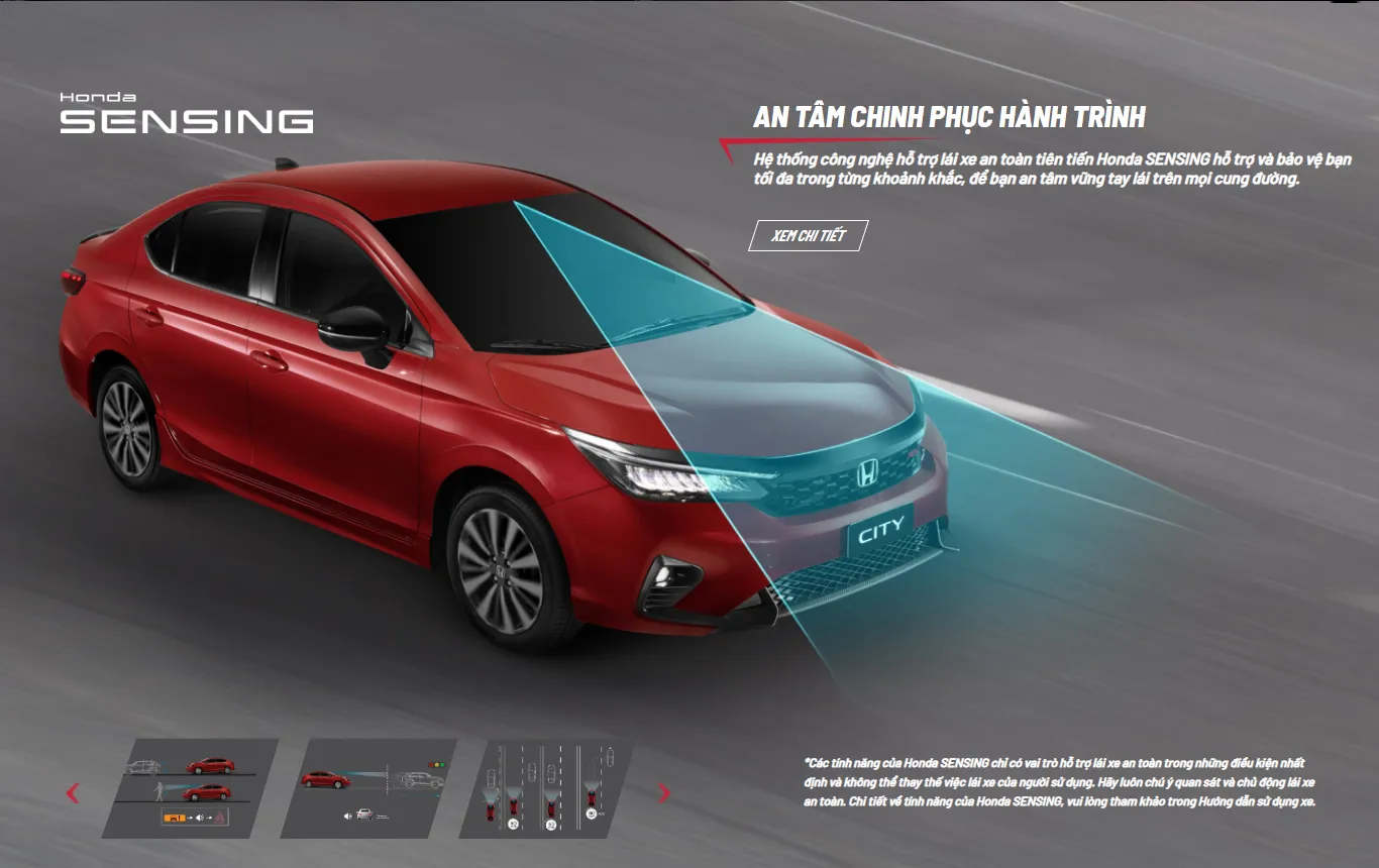 Với hệ thống Honda SENSING được trang bị trên Honda City bản nâng cấp mới, Honda đã hoàn thiện áp dụng hệ thống này trên tất cả các phiên bản thuộc tất cả các dải sản phẩm và vinh dự được đánh giá đạt Chứng nhận an toàn 5 sao của Chương trình Đánh giá xe mới Đông Nam Á (ASEAN NCAP).
